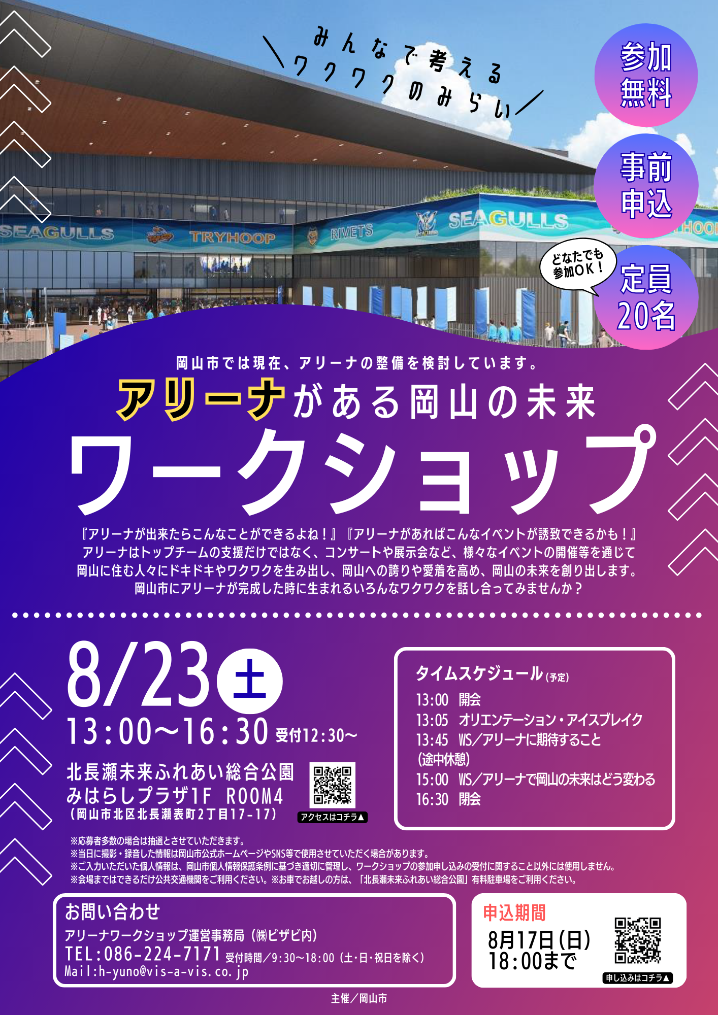 アリーナワークショップ運営事務局(㈱ビザビ) TEL:086-224-7171